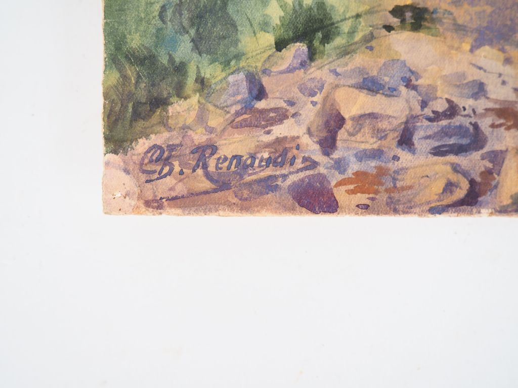 RENAUDIN. "La roche avec falaises sémaphore". Aquarelle signée en bas à gauche, titrée et datée 1928 au dos. Dim. 22 x 35,5 cm.