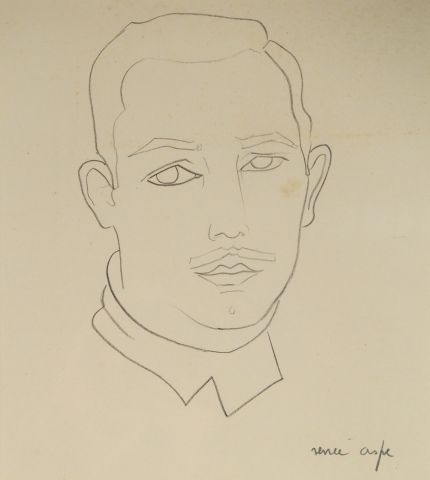 Renée ASPE "Portrait d’homme". Dessin au crayon, signé en bas à droite. 28.5 x 25.5 cm