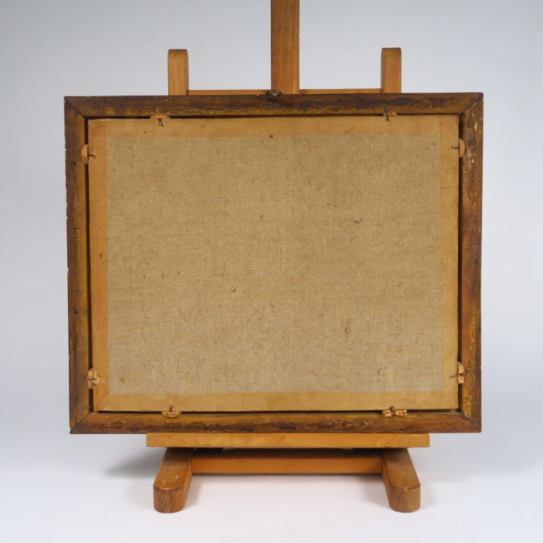 REYMANN. "Cour de ferme animée en Afrique du Nord" Huile sur toile marouflée sur panneau, signée en bas à gauche. Dim. : 33 x 41 cm.