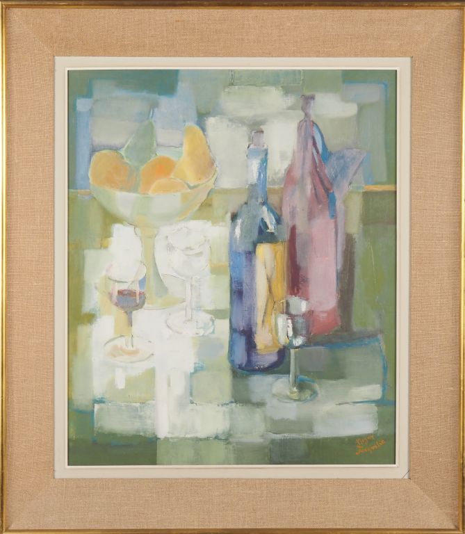 Roger JACQUELIN. "nature morte" Huile sur toile, signée en bas à droite Dim. 55,5 x 46 cm