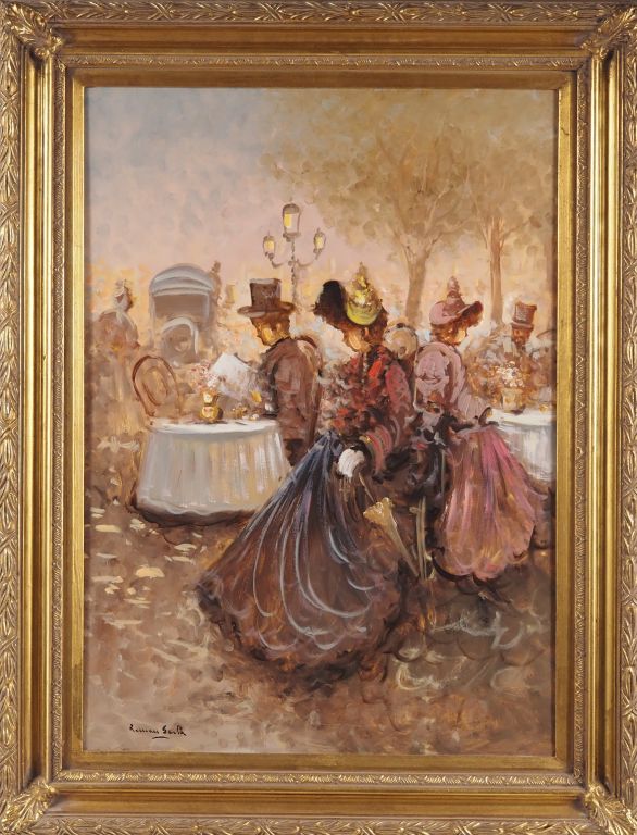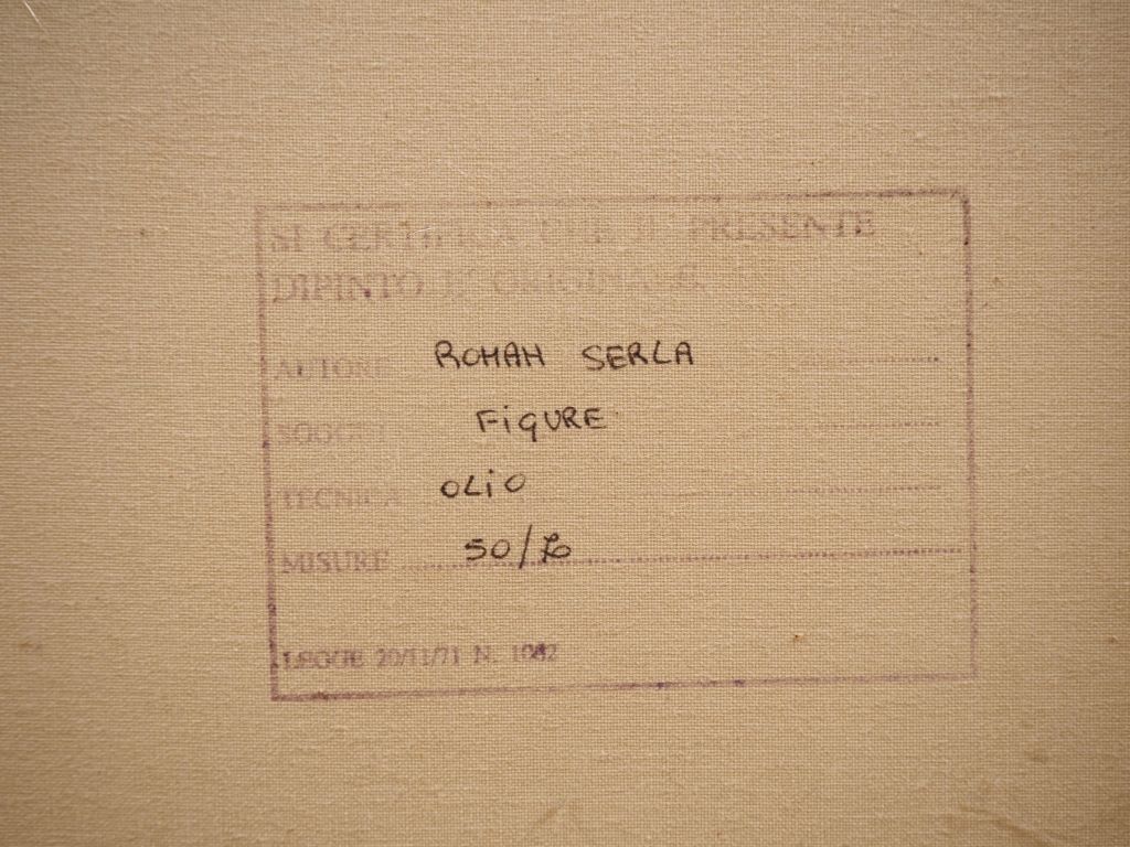 Roman SERLA. "personnages attablés" Huile sur toile, signée en bas à gauche Dim. 70 x 50 cm