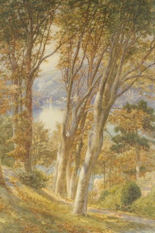 S.G.W. ROSCOE "Vue de lac en automne". Aquarelle, signée en bas à gauche. 52 x 34,5 cm