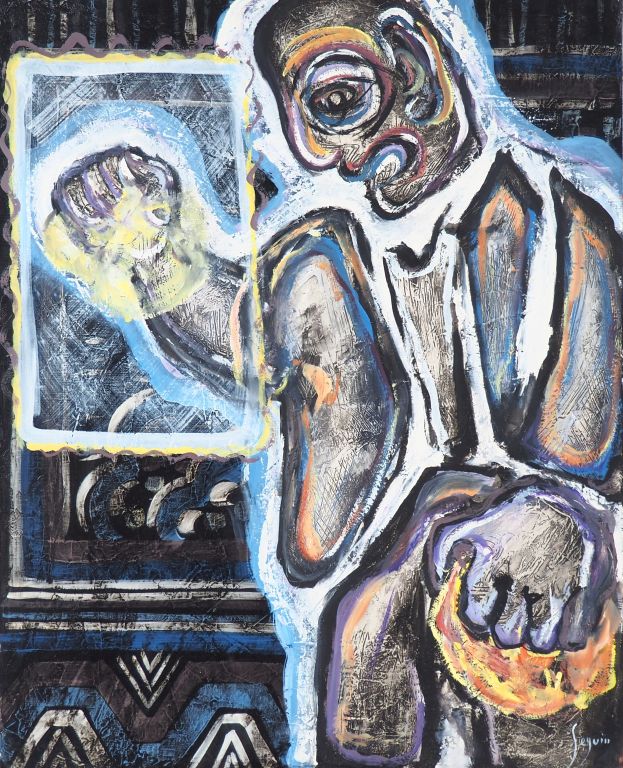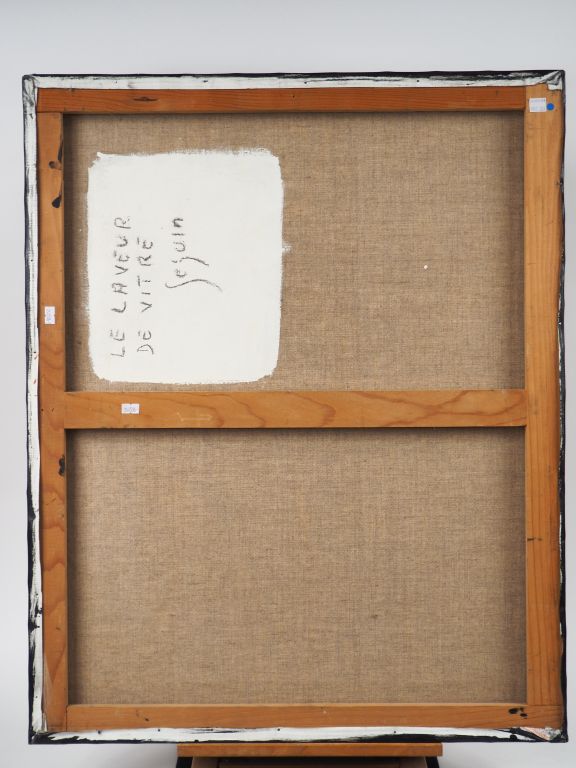 SEGUIN. "le laveur de vitre". Huile sur toile, signée en bas à droite. Dim. 81 x 65 cm
