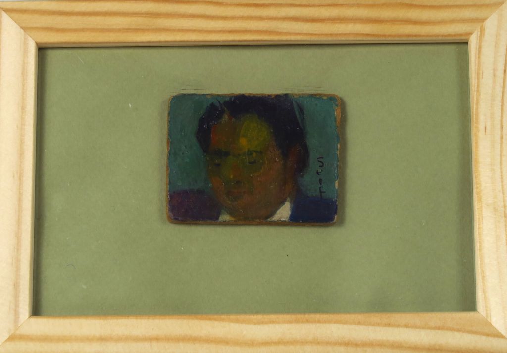 SEIF WANLY "Autoportrait" Huile sur panneau. Signée en bas à droite. 4 x 5,5 cm