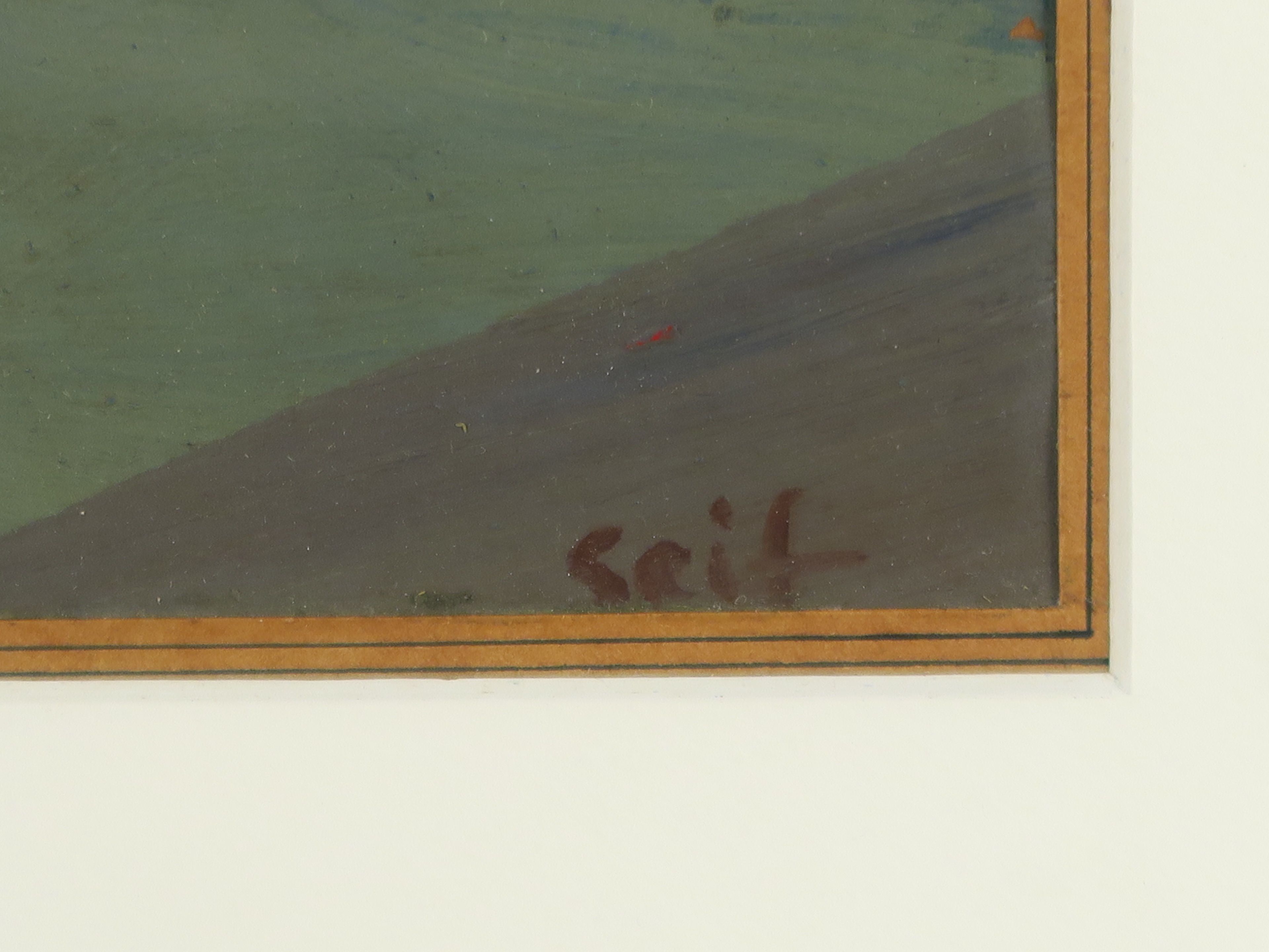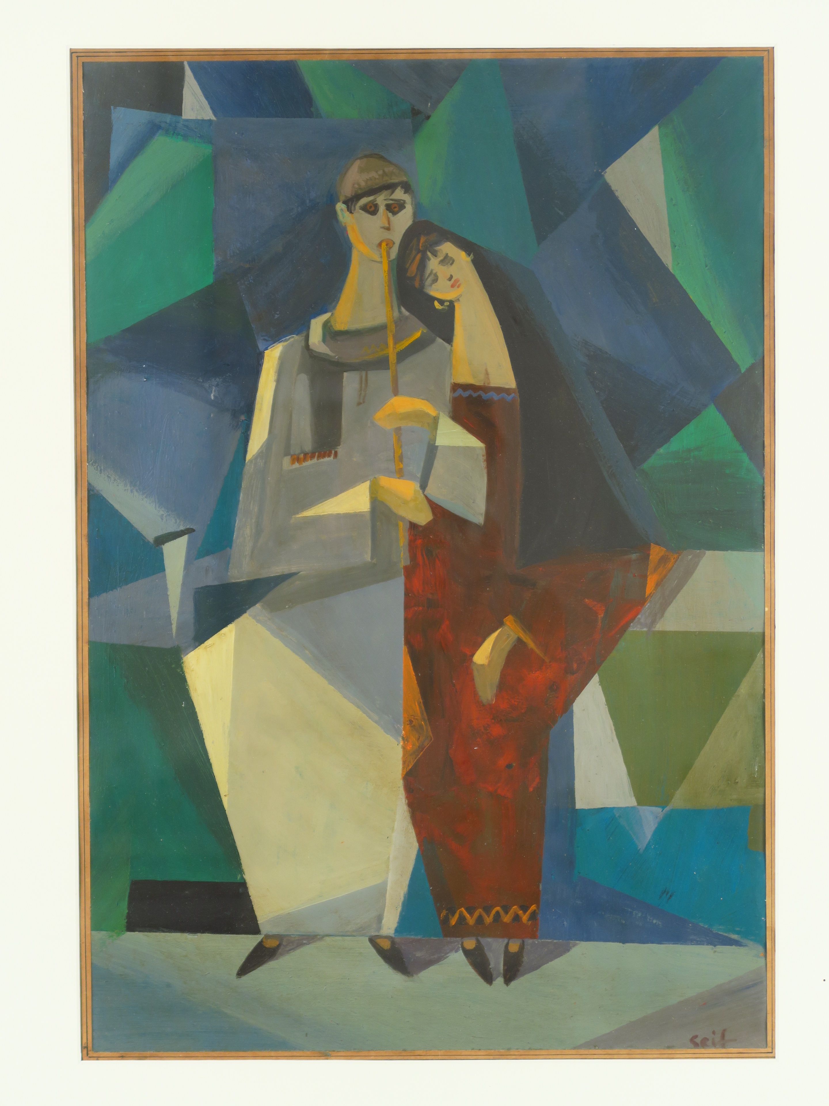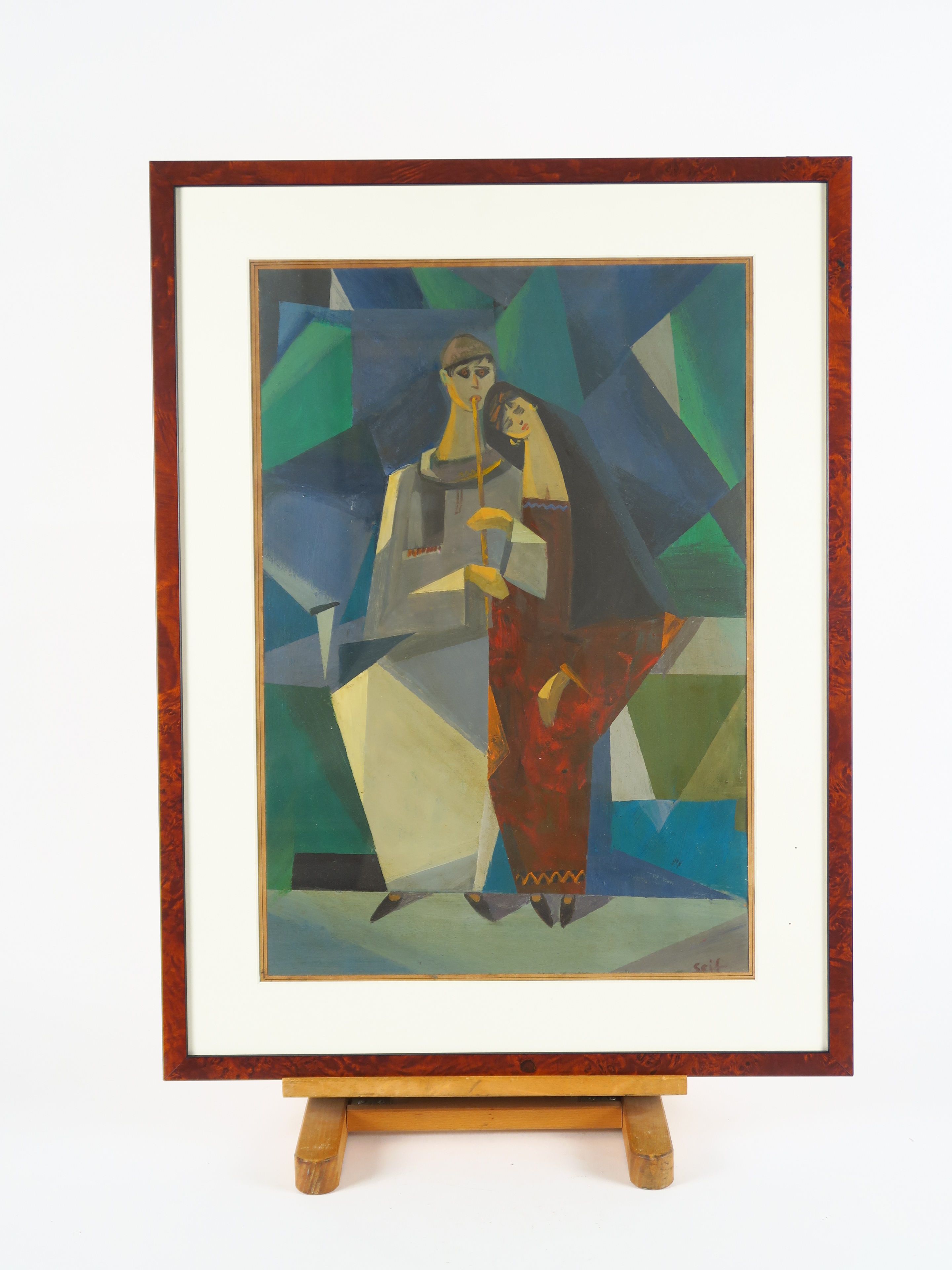 SEIF WANLY "Joueur de flûte et jeune femme" Huile sur papier. Signée en bas à droite. 55,5 x 37,5 cm