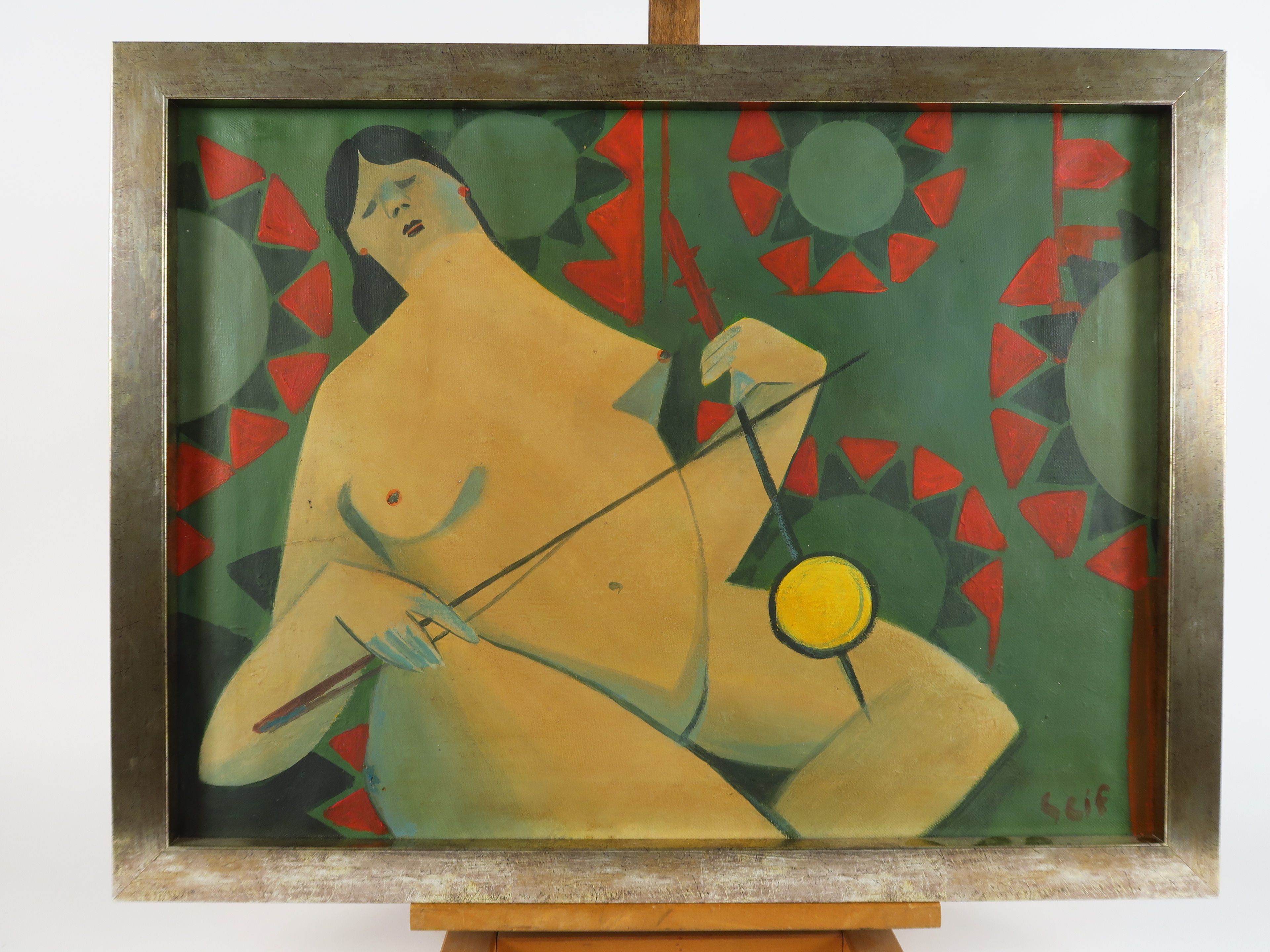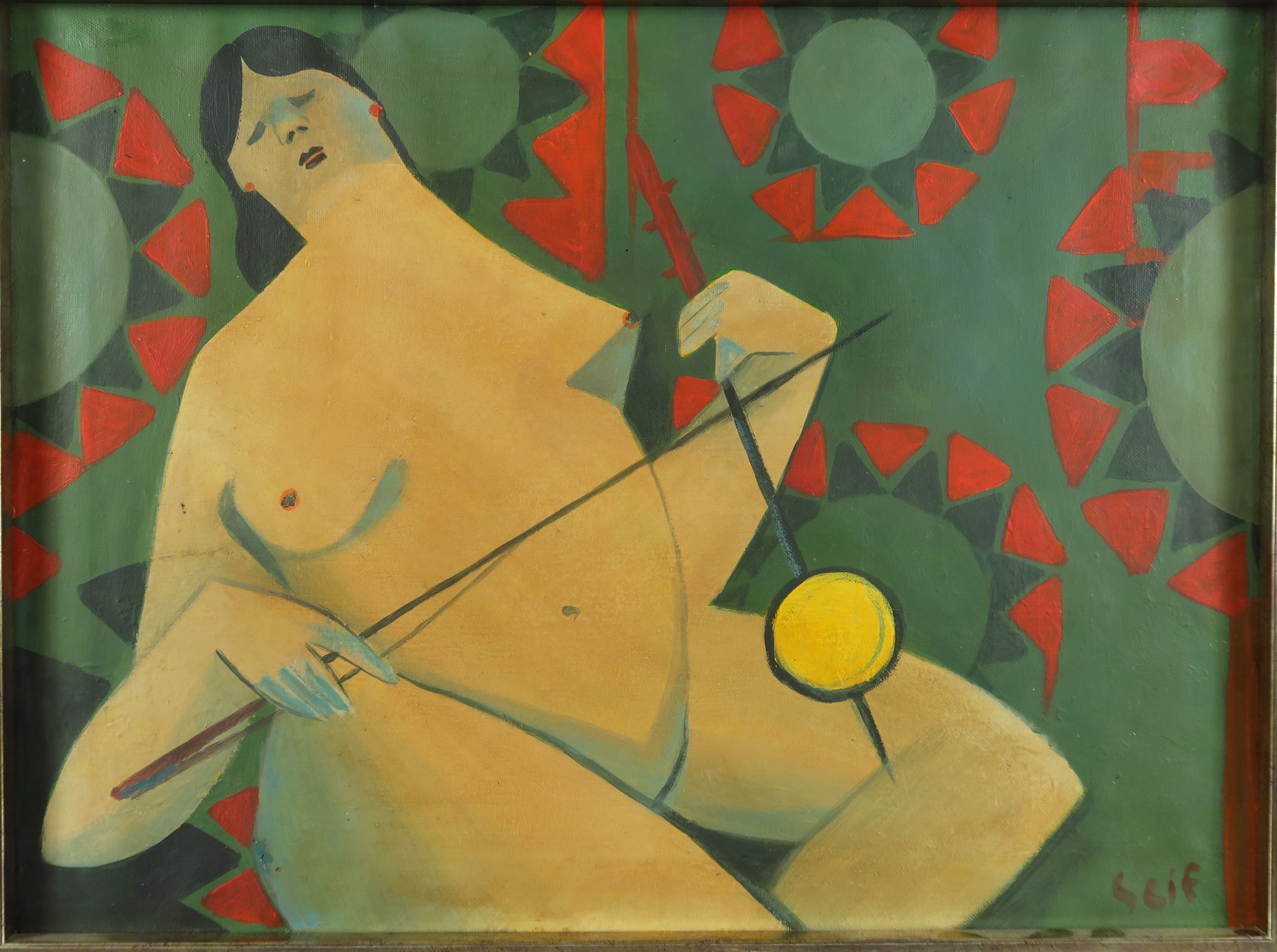 SEIF WANLY "Joueuse de Rababa" Huile sur toile. Signée en bas à droite. (accidents et restaurations) 44,5 x 60 cm