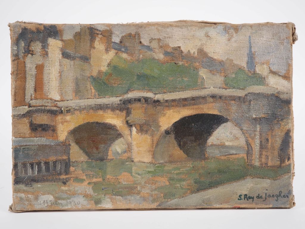Suzanne REY de JAEGHER. "Le vieux pont". Huile sur toile, signée en bas à droite. Datée 1930. Dim. 27 x 41 cm
