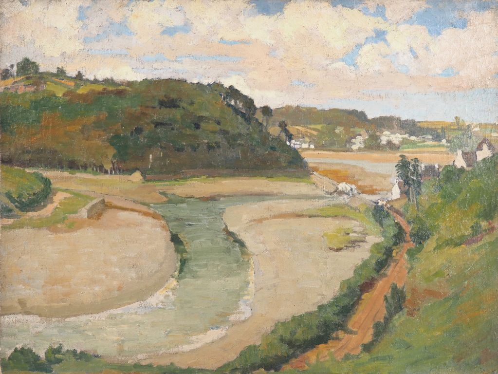 Suzanne REY de JAEGHER. "Ria en Bretagne". Huile sur toile, signée au dos. Dim. 46 x 61 cm
