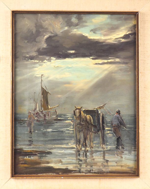 Tilly MOES. "Les Goémoniers" Huile sur toile, signée en bas à droite. ...