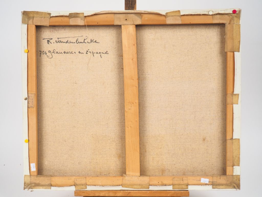 VAN DEN BULCKE. "Glaneuse en Espagne". Huile sur toile signée en bas à gauche, titrée au dos. Dim. 50 x 61 cm.