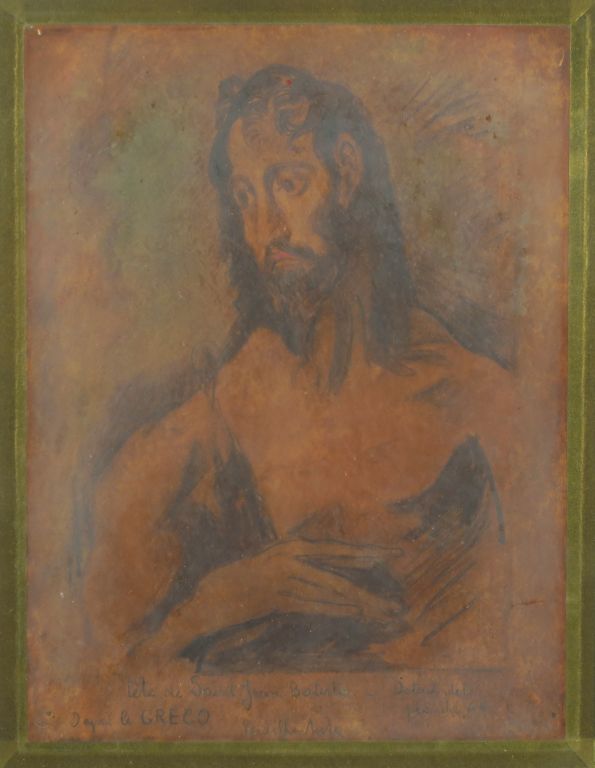 VERDILHAN "Tête de saint Jean-Baptiste d'après Le Greco" Dessin. Signé et titré. 31 x 23,5 cm