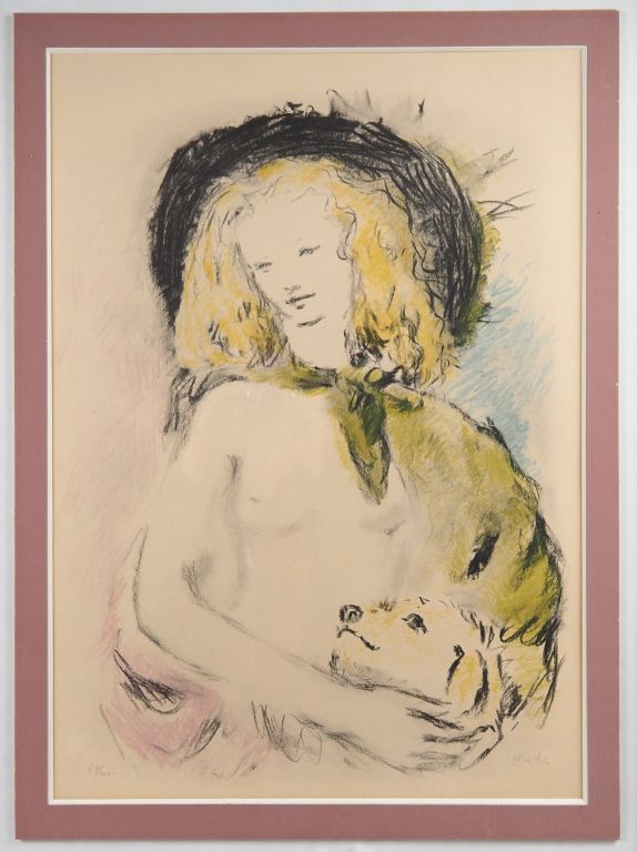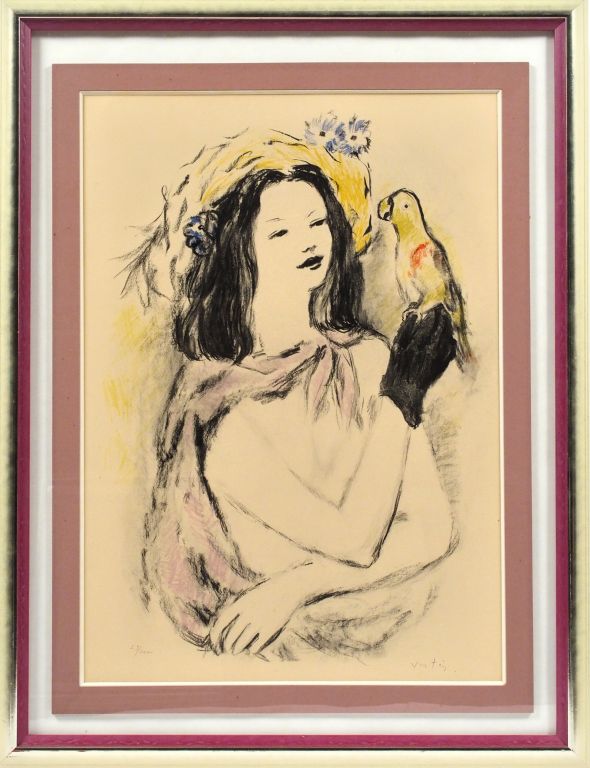 VERTES. "Elégante au chien" et "Elégante au perroquet". Paire de lithographies signées en bas à droite. Dim. 65,5 x 47 cm