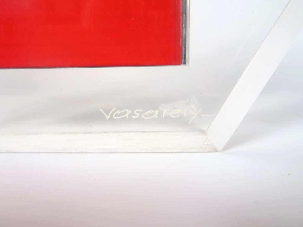 Victor VASARELY "Hexagone" Sculpture en plexiglas contenant quatre ouvrages sous couvertures inédites de Victor Vasarely. Signée et numérotée 0103/1500. Avec son certificat d'authenticité. 26 x 30 cm