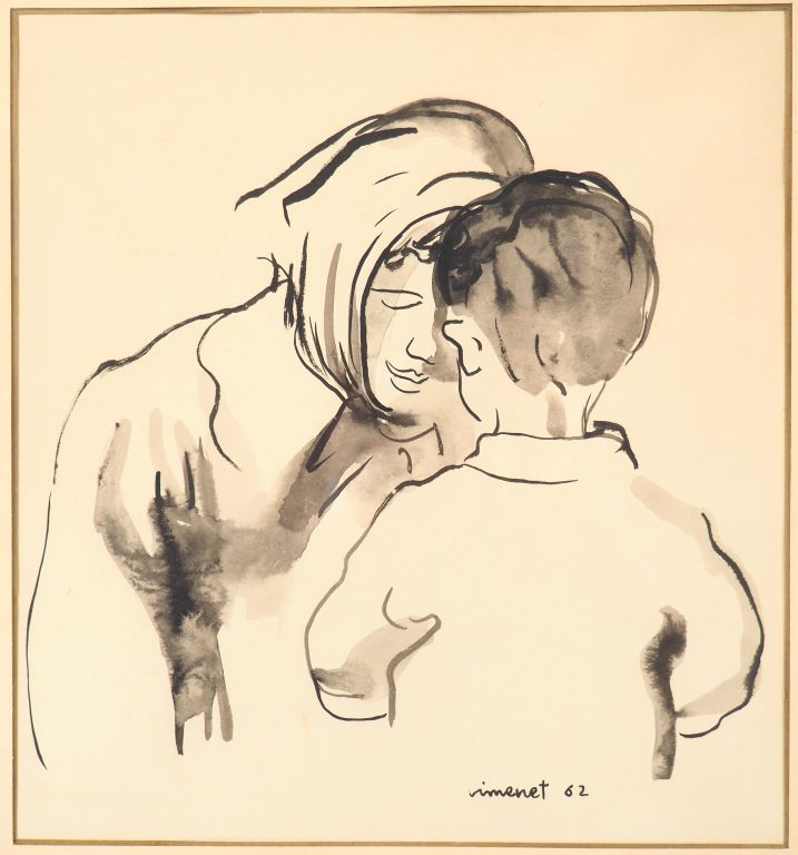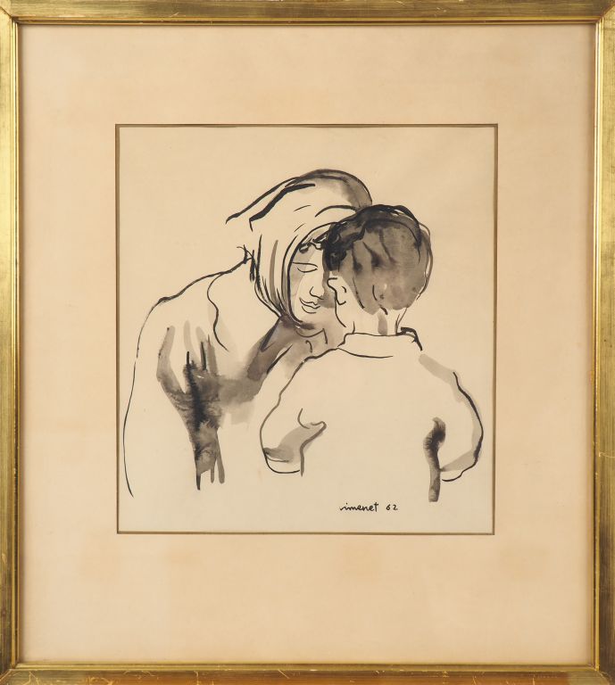 VIMENET. "Mère et son enfant". Encre signée et datée 62 en bas à droite. Dim. 26,5 x 24 cm