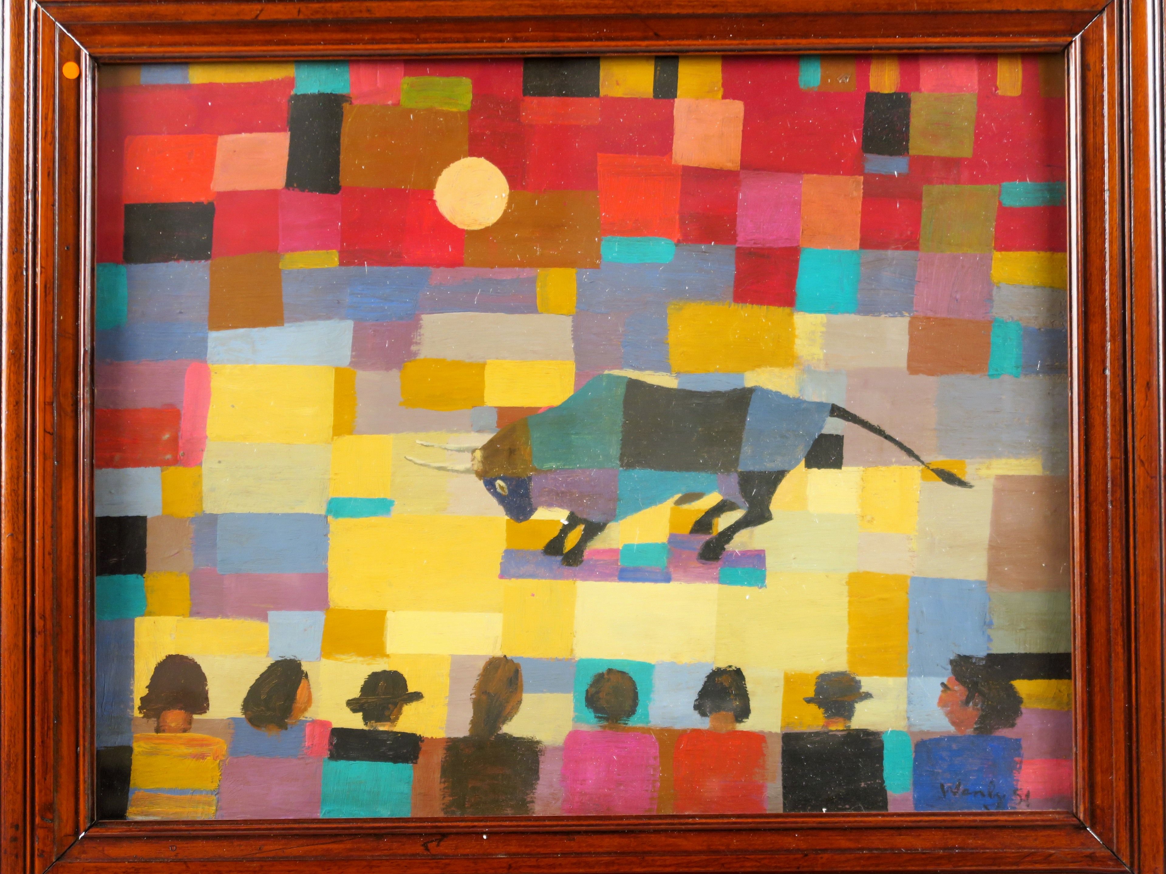WANLY "Tauromachie" Huile sur carton. Signée en bas à droite et datée 51. 39 x 50 cm