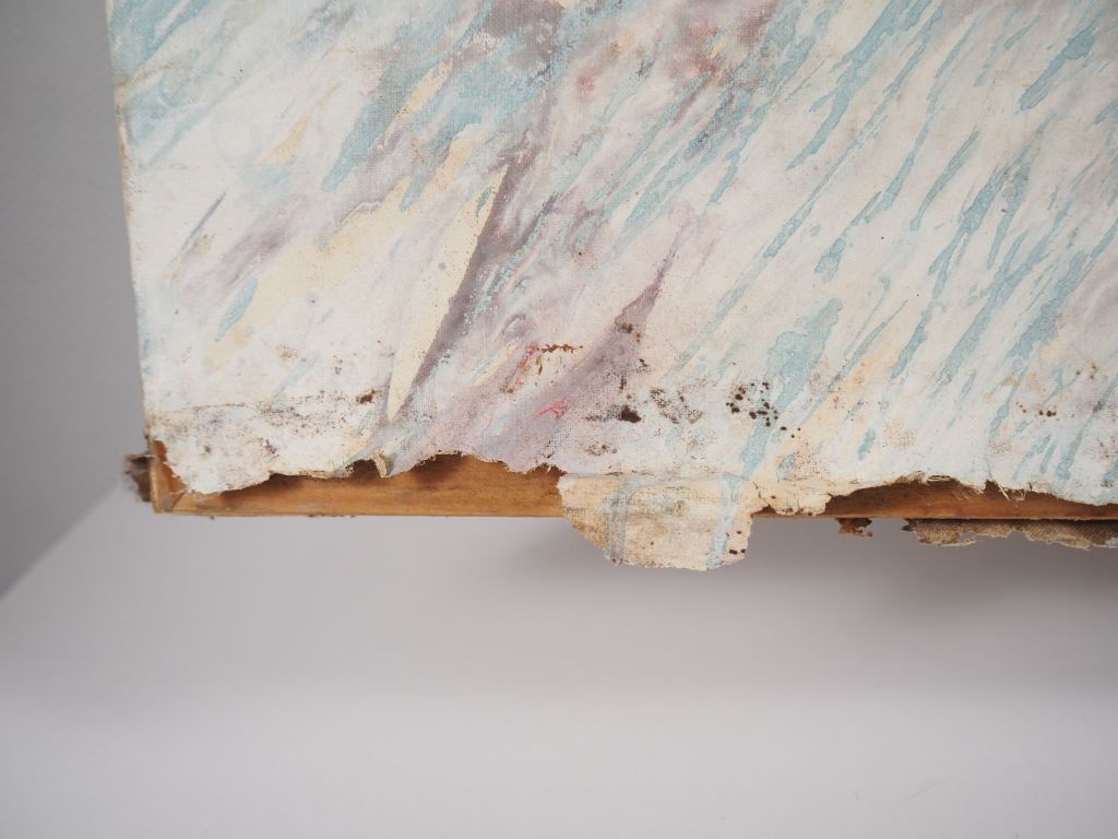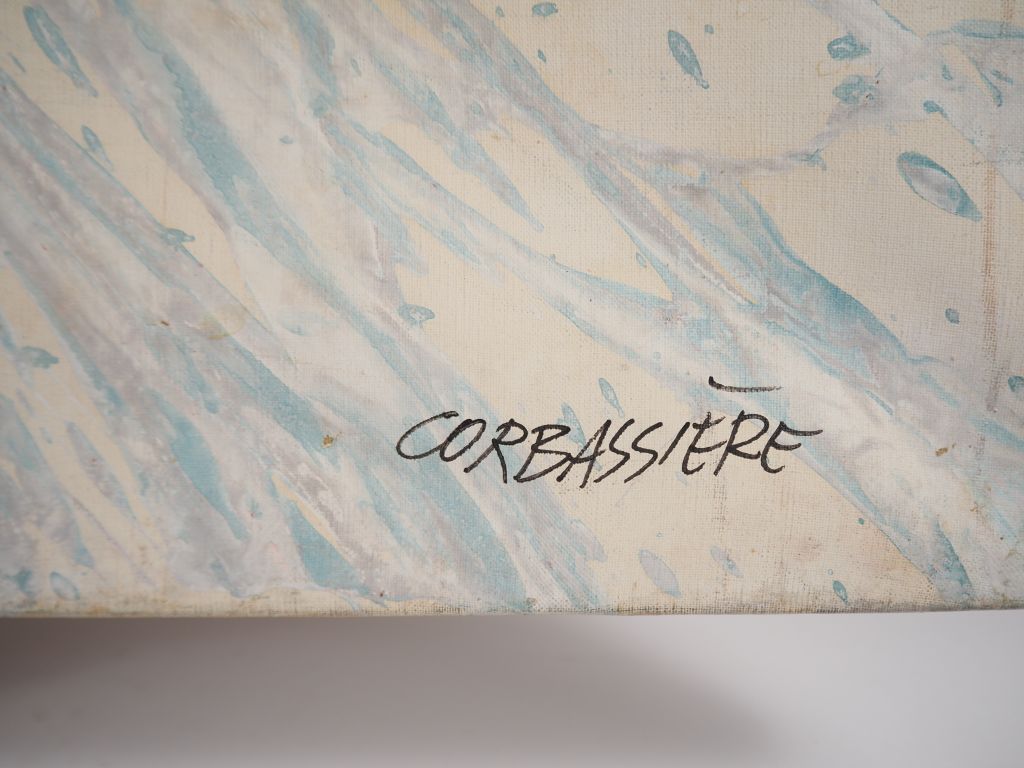 Yves CORBASSIERES. "Composition". Huile sur toile. Dim. 89 X 116 cm. (accidents sur les bords).