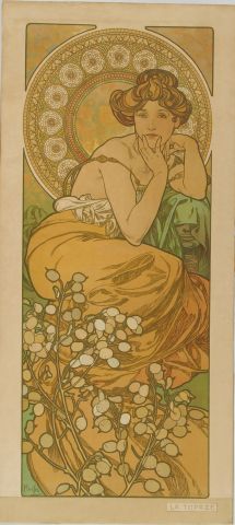 MUCHA 'la topaze'. Lithographie,1902. F. Champenois (contrecollée sur carton). 107,5 x 49 cm
