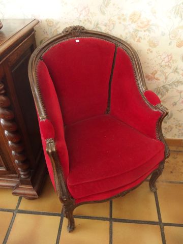 Lot de Paire de bergères de style Louis XV garniture de velours rouge au prix de 300 à 500 € en vente aux enchères par l'hôtel des ventes Primardeco