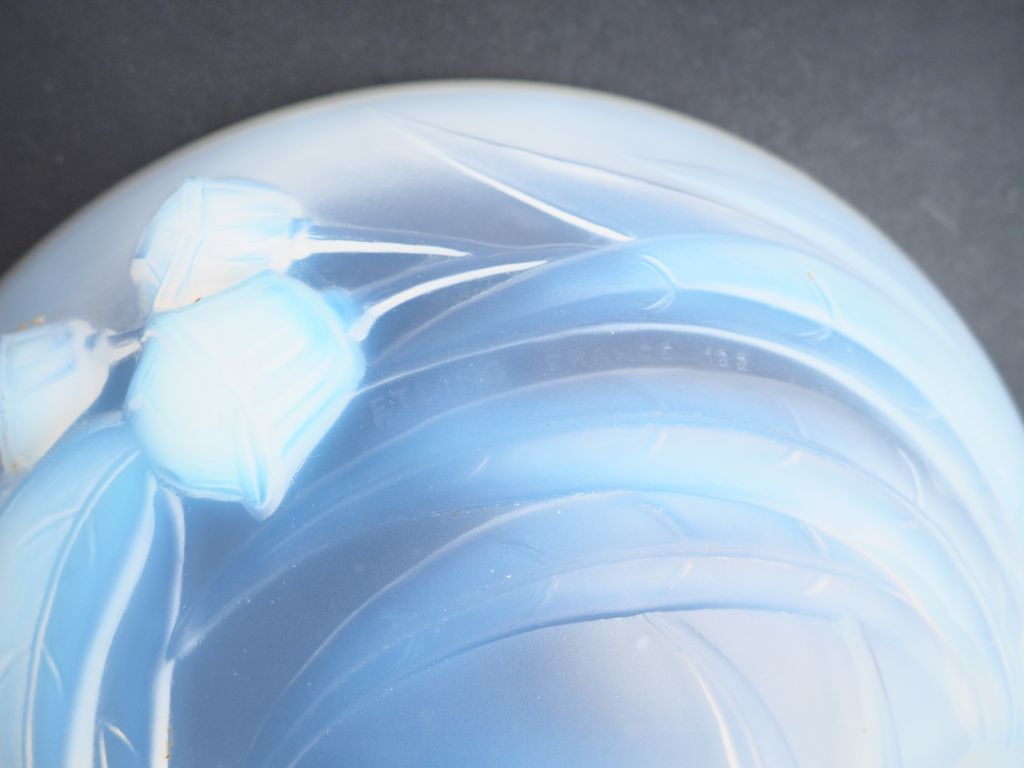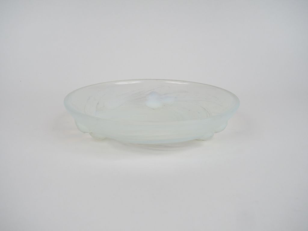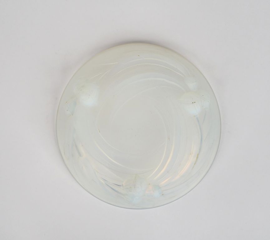 ETLING. Coupe Art Déco en verre opalescent à décor de fleurs et de feuillage. Diam. 23 cm