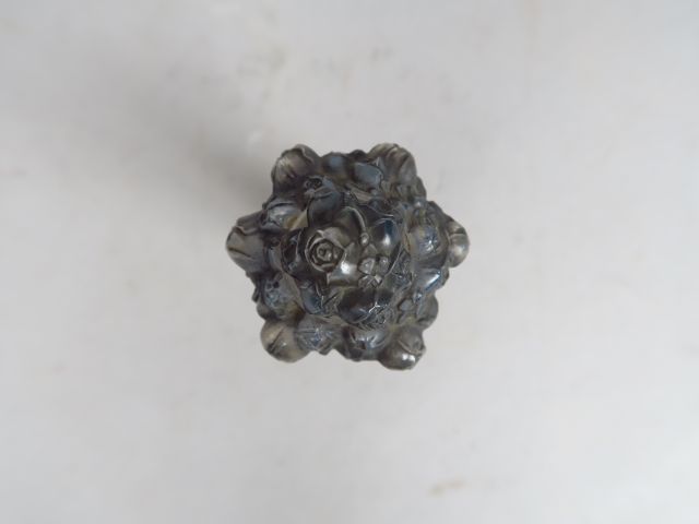 LALIQUE. Flacon de parfum en verre modèle 'Pan' vers 1920 (bouchon bloqué, micro égrenure)