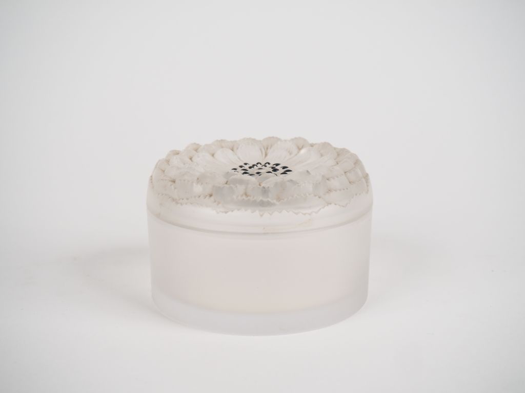 Lot de LALIQUE France. Poudrier en cristal Signé Dim. 5,5 x 8,5 cm au prix de 40 à 60 € en vente aux enchères par l'hôtel des ventes Primardeco