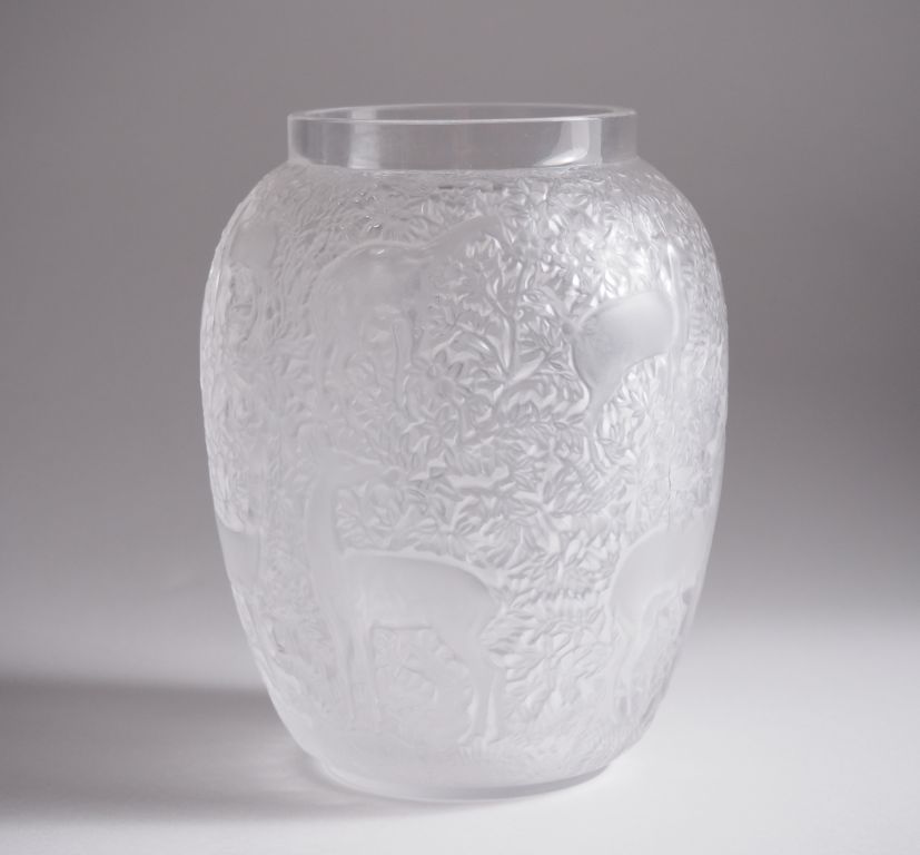 LALIQUE France. Vase en verre ou cristal à décor de biches, possibilité de le monter en lampe Signé H. 17 cm