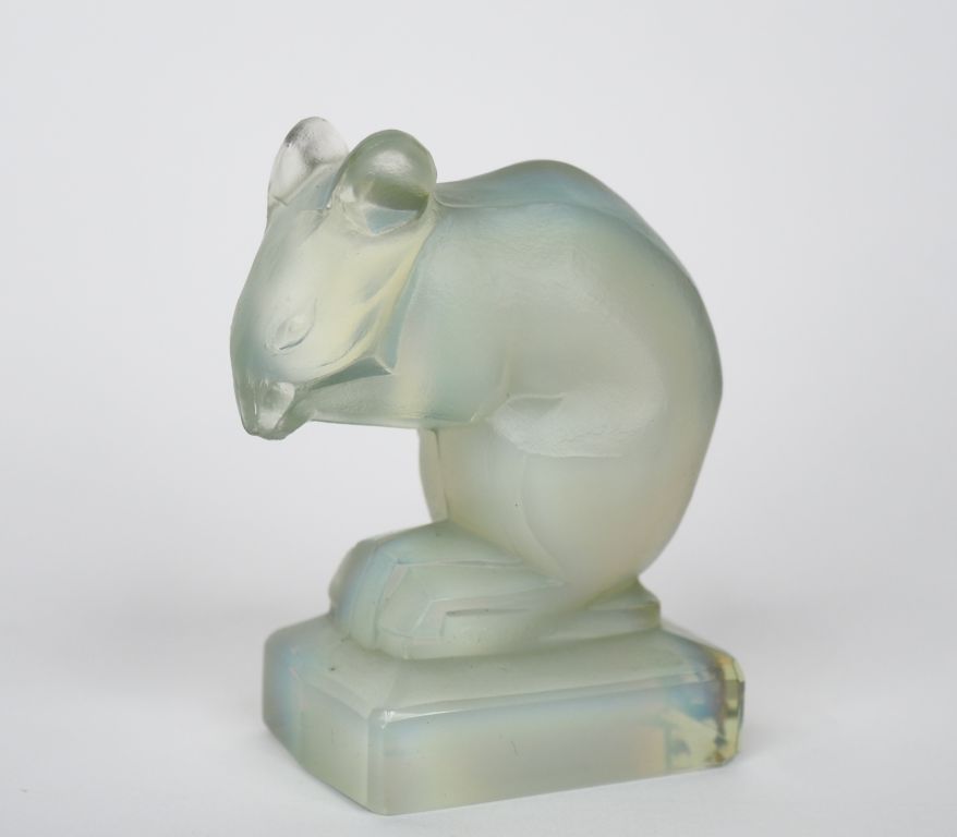 SABINO. "la souris" Sujet en verre opalescent. Signé. H. 7 cm
