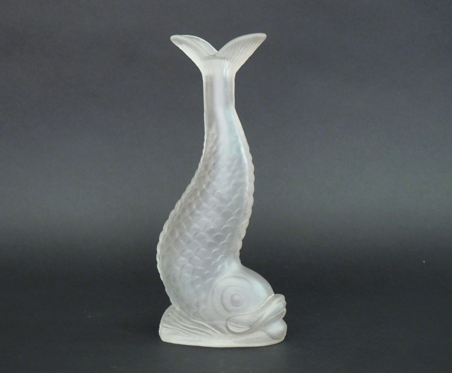 Vase Art Déco en verre moulé en forme de dauphin. H. 26 cm