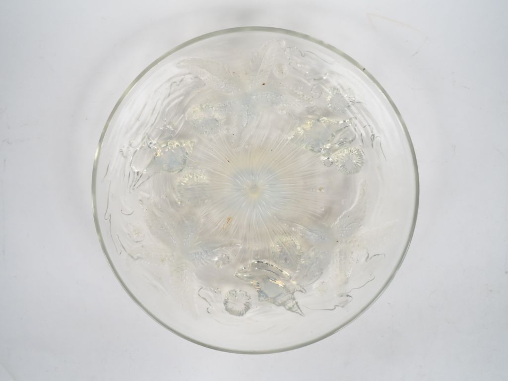 VERLYS. Coupe Art Déco en verre translucide et opalescent à décor de coquillages. Signée Diam. 35 cm