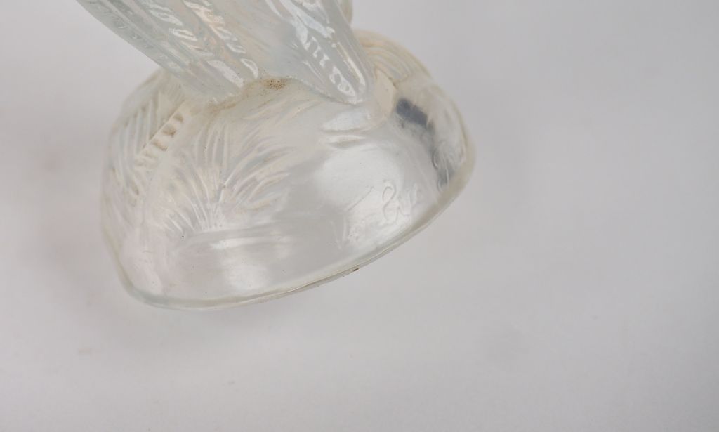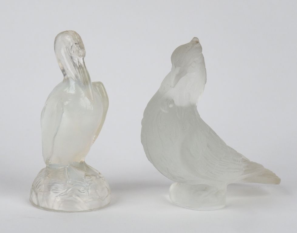 VERLYS. "le pélican" Sujet en verre opalescent Signé H. 11 cm VERLYS. "le pigeon" Sujet en verre moulé Signé H. 10,5 cm