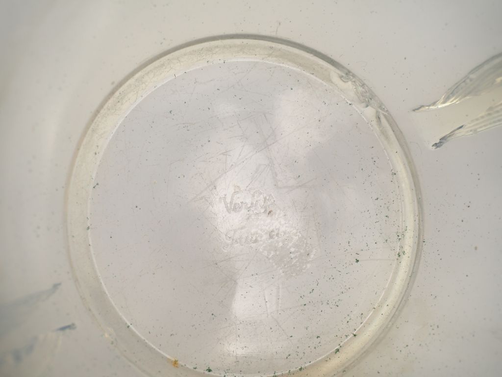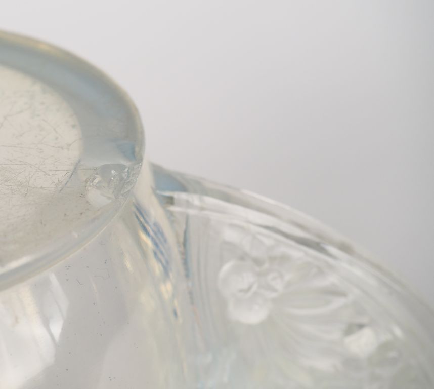 VERLYS. Vase à anses en verre translucide et opalescent, à décor d'oiseaux de paradis et de baies. Signé. (égrenures à la base, micro égrenure au col) H. 19,5 cm
