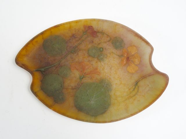 A. WALTER à Nancy. Coupe en pâte de verre, à décor de capucines. Signée. Largeur : 31,5 cm (2 égrenures et une petite restauration).