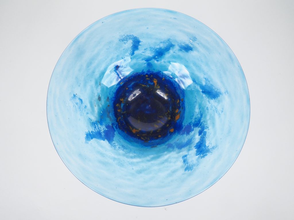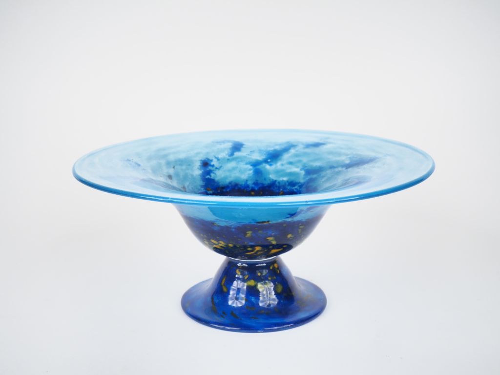 DAUM. Coupe sur piédouche en verre marbré bleu et jaune Signée Daum France H. 11,5 cm Diam. 25,5 cm