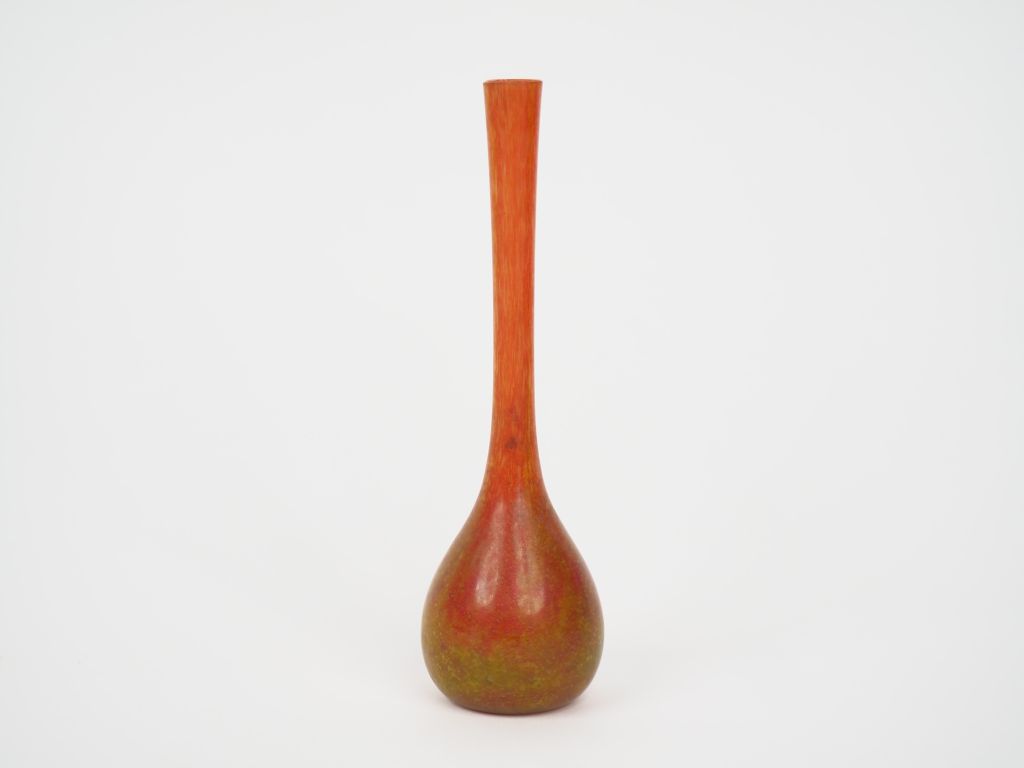 DAUM Nancy. Soliflore en verre marbré rouge et jaune. Signé. H. 16 cm (égrenure au col)