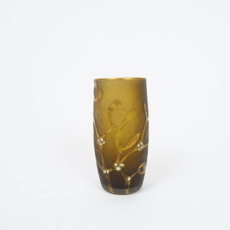 DAUM. Vase en cristal, à décor émaillé de gui. Signé. H. 12,5 cm
