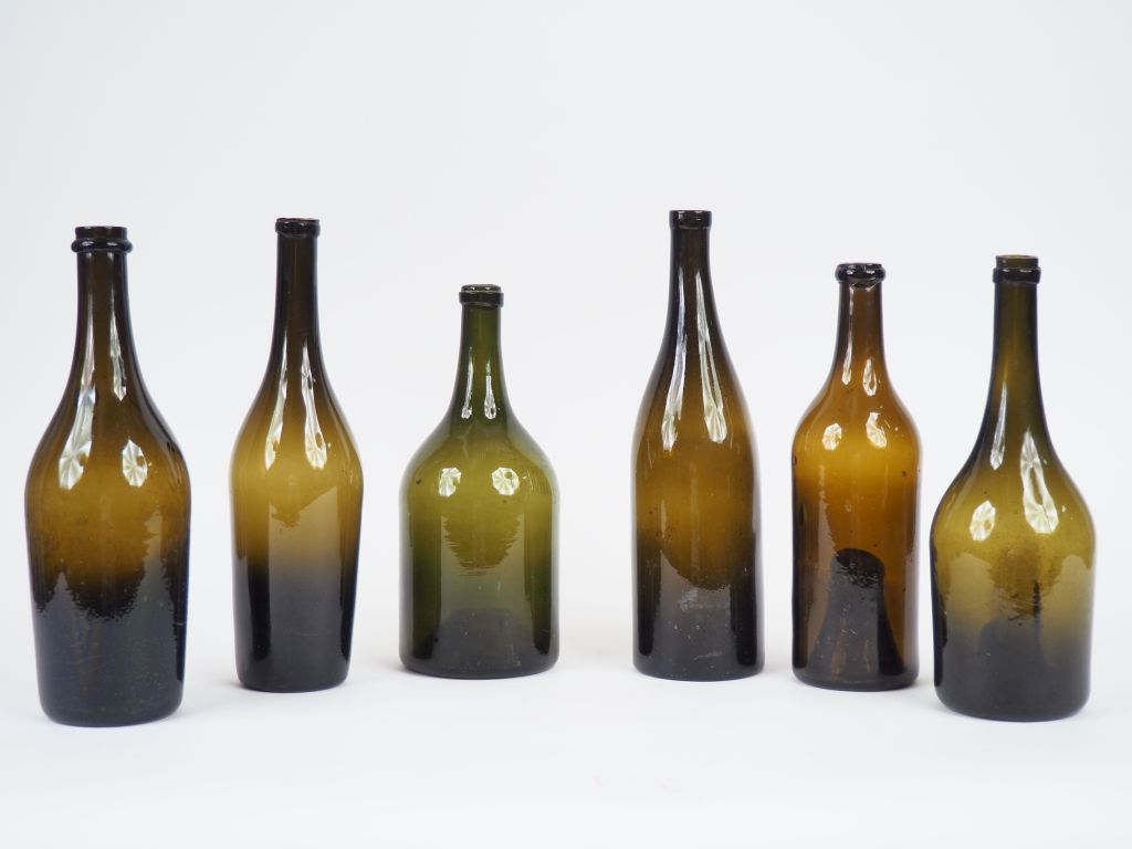 Lot de 6 bouteilles XIXème en verre soufflé fumé. au prix de 30 à 50 € en vente aux enchères par l'hôtel des ventes Primardeco