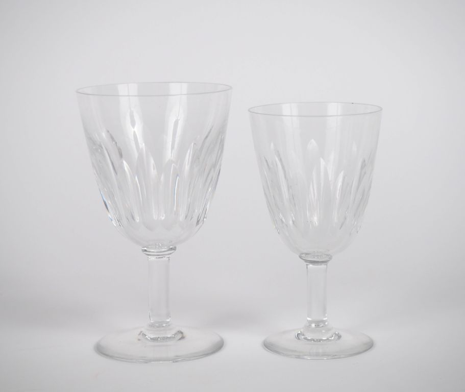 BACCARAT. Partie de service de verres en cristal comprenant 8 verres à eau et 8 verres à vin. Signés.
