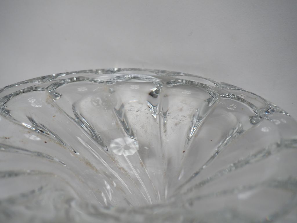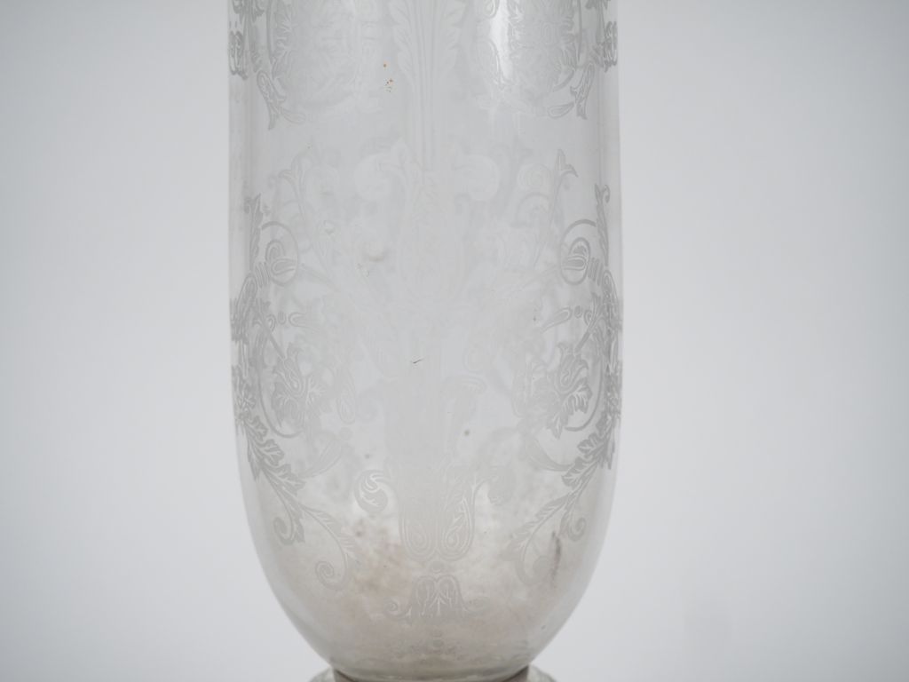 BACCARAT. Photophore en cristal à décor gravé de rinceaux feuillagés et de côtes torses. Signé. H. 41,5 cm.