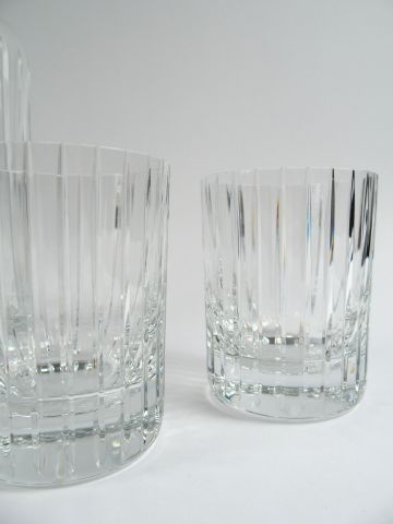 BACCARAT. Service à whisky en cristal, comprenant un flacon et 6 verres dans deux coffrets. Signés.