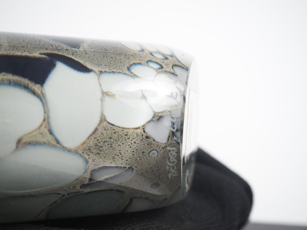 BEGOU. Grand vase éventail en verre polychrome. Signé et daté 92. Dim....