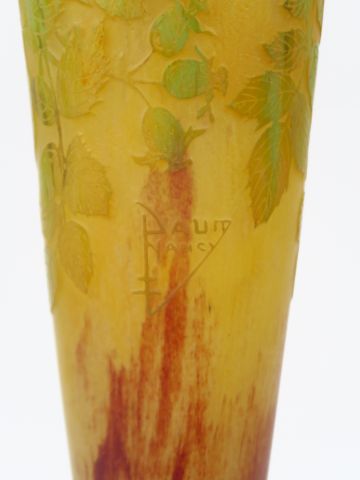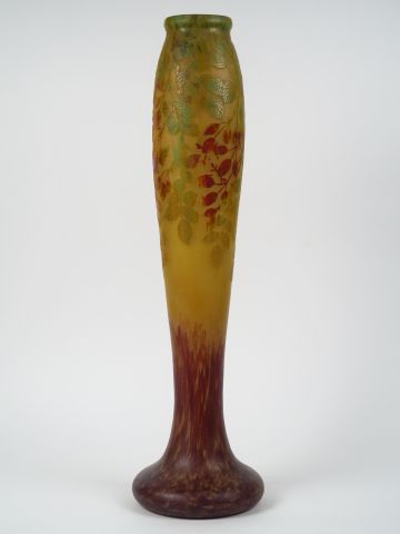 DAUM. Grand vase ovoïde en verre polychrome gravé et émaillé à décor d'églantines Signé H. 70,5 cm