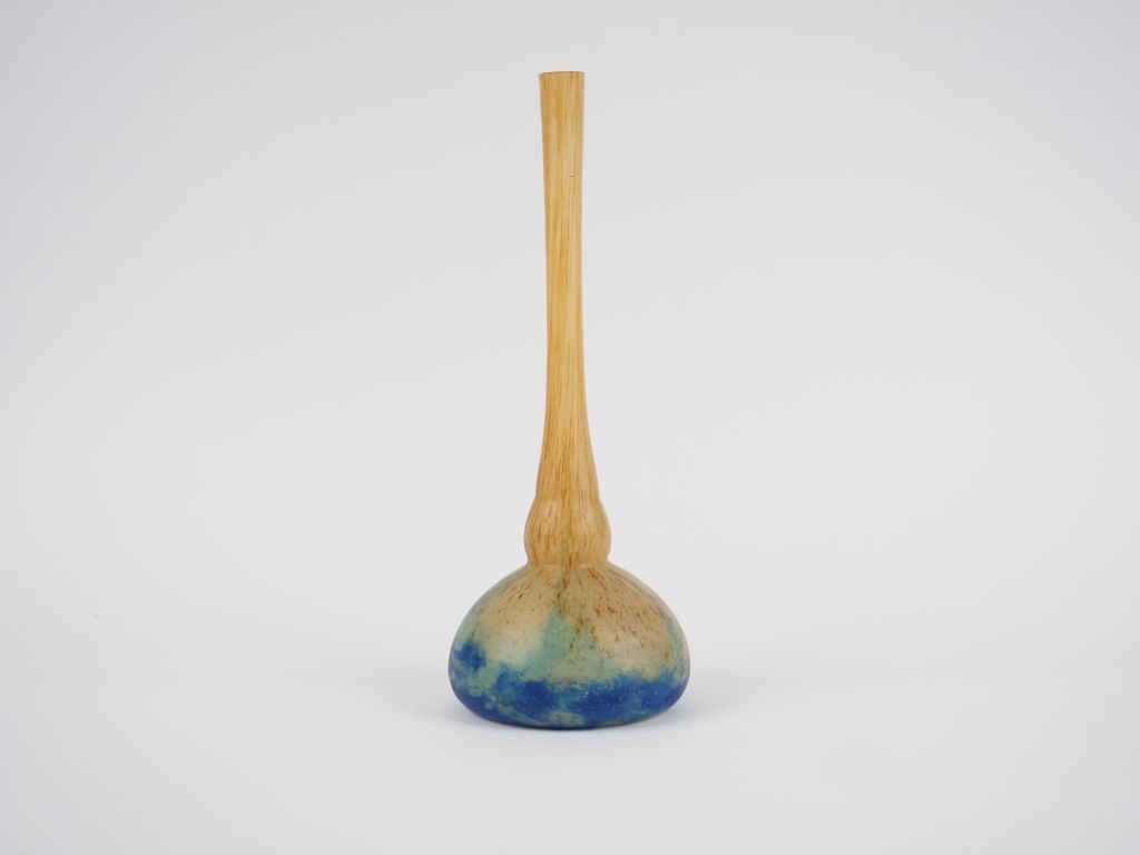 DAUM Nancy. Vase de forme berluze en verre jaune nuancé brun et bleu. ...