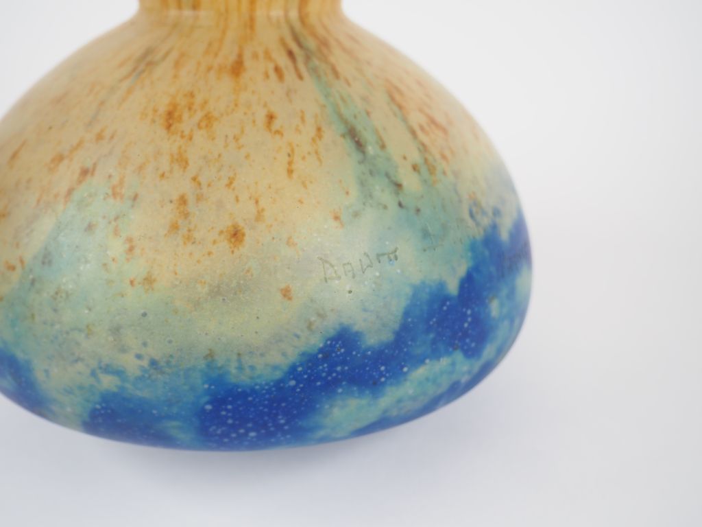 Lot de DAUM Nancy. Vase de forme berluze en verre jaune nuancé brun et bleu. au prix de 150 à 200 € en vente aux enchères par l'hôtel des ventes Primardeco