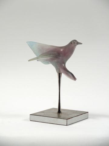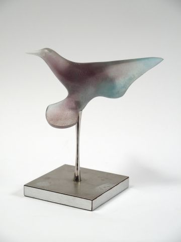 DAUM. Sculpture en pâte de verre "Oiseau". Signée LHOSTE. Hauteur avec son pied : 23 cm
