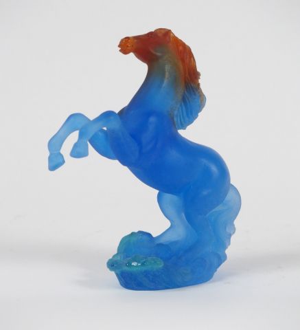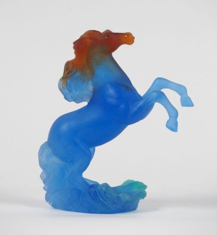 Lot de DAUM. Sujet en pâte de verre polychrome "Cheval cabré". Signé. H. : 17 au prix de 100 à 200 € en vente aux enchères par l'hôtel des ventes Primardeco