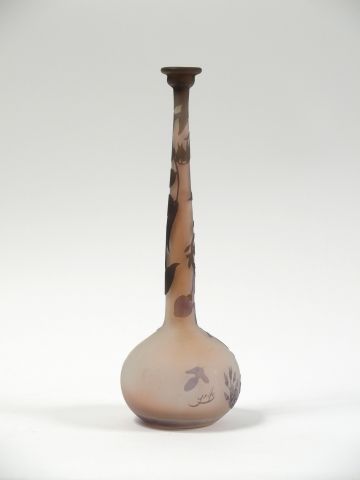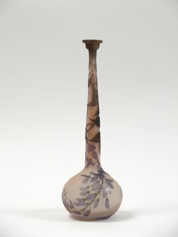 GALLE. Soliflore en verre, à décor gravé en camée et à l'acide de glycine mauve. Signé. H. : 31 cm