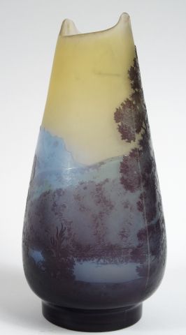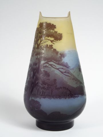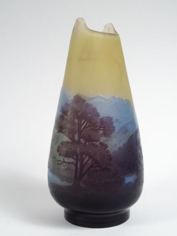GALLE. Vase piriforme en verre, à décor gravé en camée et à l'acide de paysage vosgien. Signé. H. : 18,8 cm