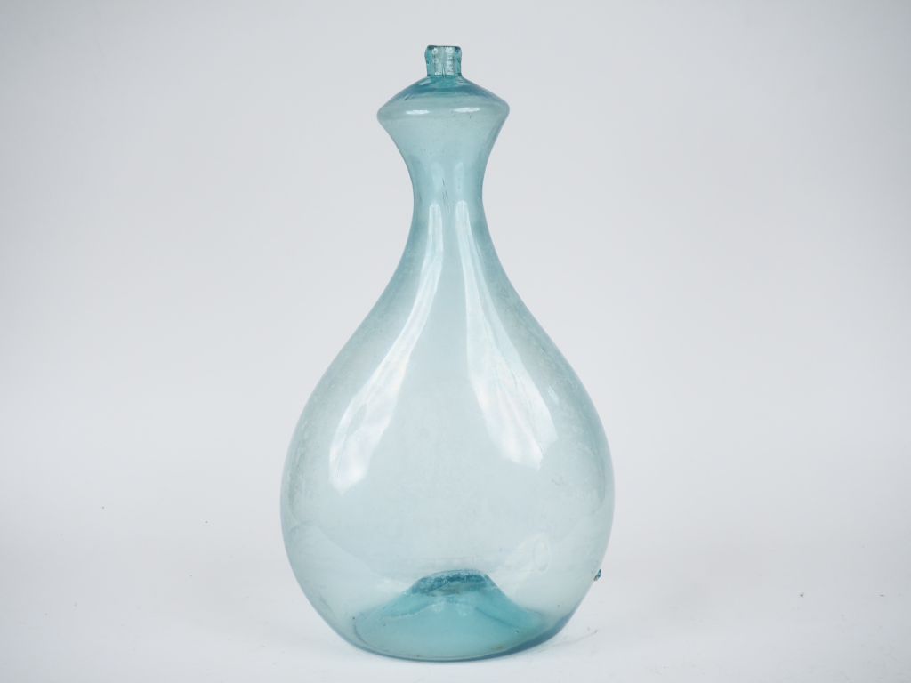 Grand biberon de berger en verre bleu soufflé XVIIIème de la Grésigne....