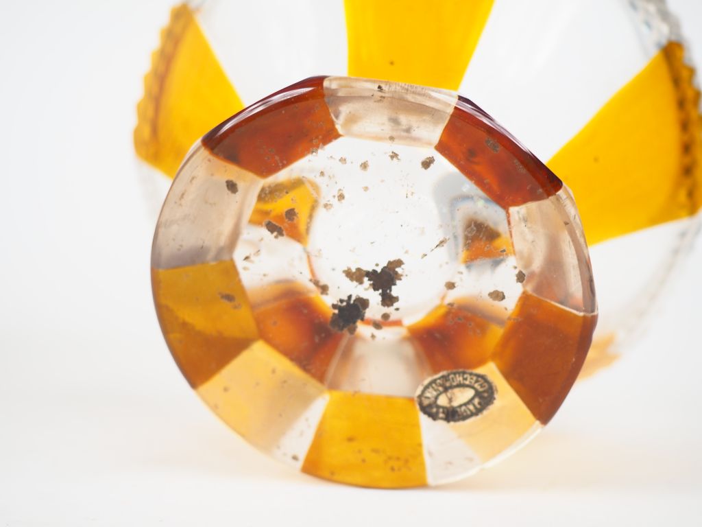 Grand flacon en cristal taillé bicolore. H. 37 cm On y joint un sucrier en cristal bicolore. H. 15 cm et un vase Médicis (une égrenure) H. 20 cm