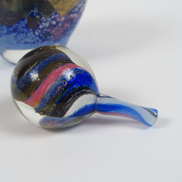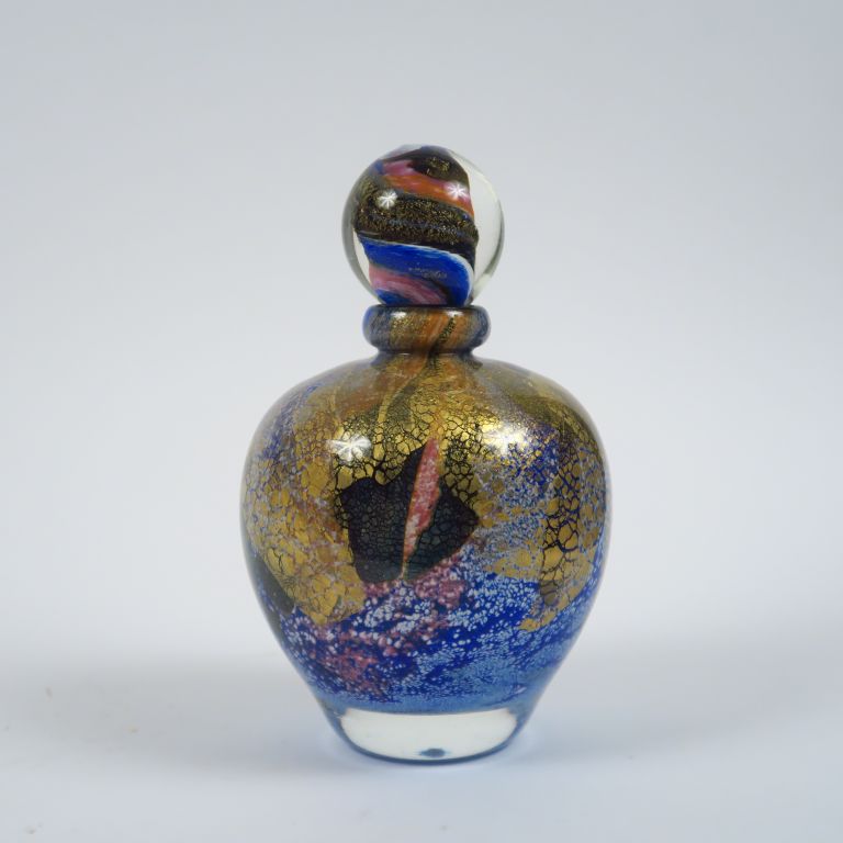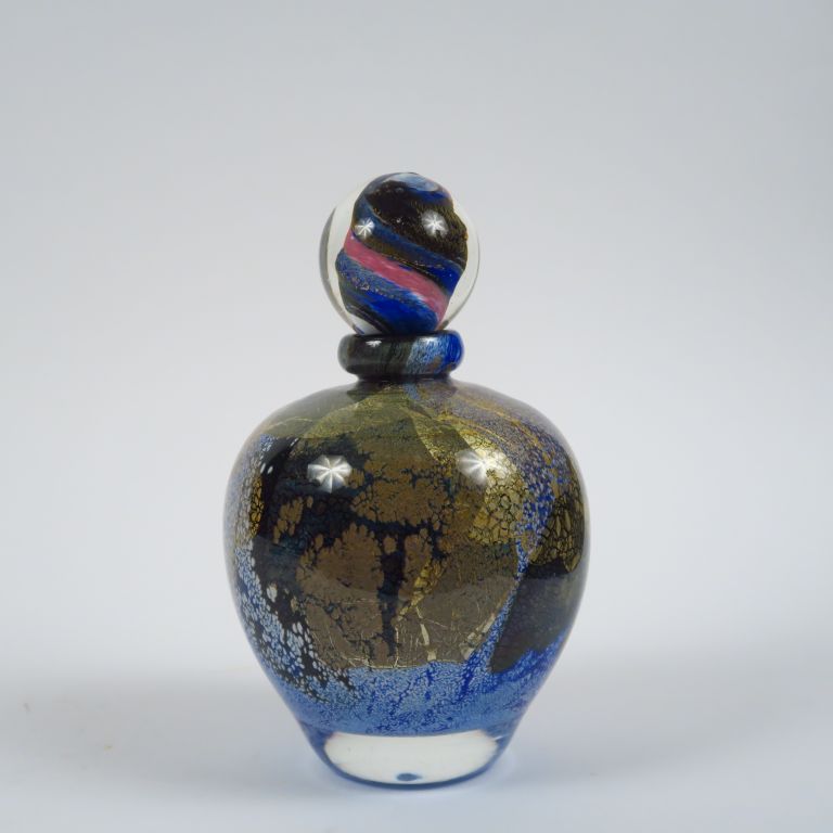 Lot de J.C. NOVARO. Flacon en verre soufflé polychrome. Signé. H. 23 cm au prix de 150 à 200 € en vente aux enchères par l'hôtel des ventes Primardeco